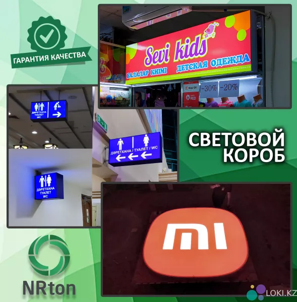 Это прямоугольная рекламная вывеска или иной формы с внутренним подсветом. Световой короб – используется в наружной и интерьерной рекламы, напоминающий ящик, лицевая часть которого плоская.