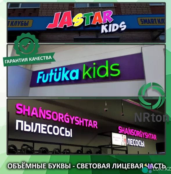 Всеми знакомая разновидность объёмных световых букв, у которых светится ночью только лицевая сторона. Буквы являются выигрышным вариантом в качестве уличной рекламы. Взгляд человека больше реагирует на объемное изображение.